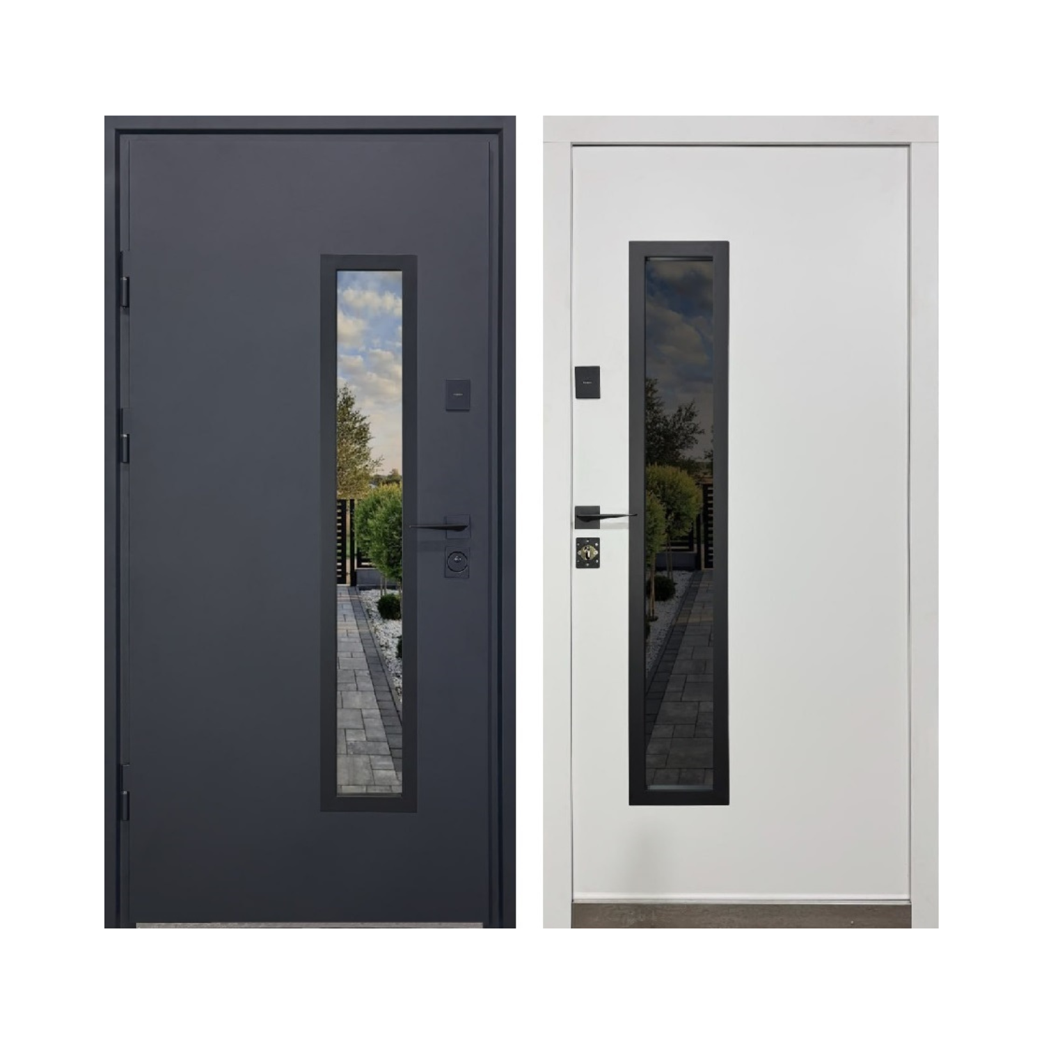 Durvju furnitūra, rokturi un slēdzeņu sistēmas ir melnā krāsā, kas piešķir mūsdienīgu un elegantisku izskatu. :contentReference[oaicite:2]{index=2}
