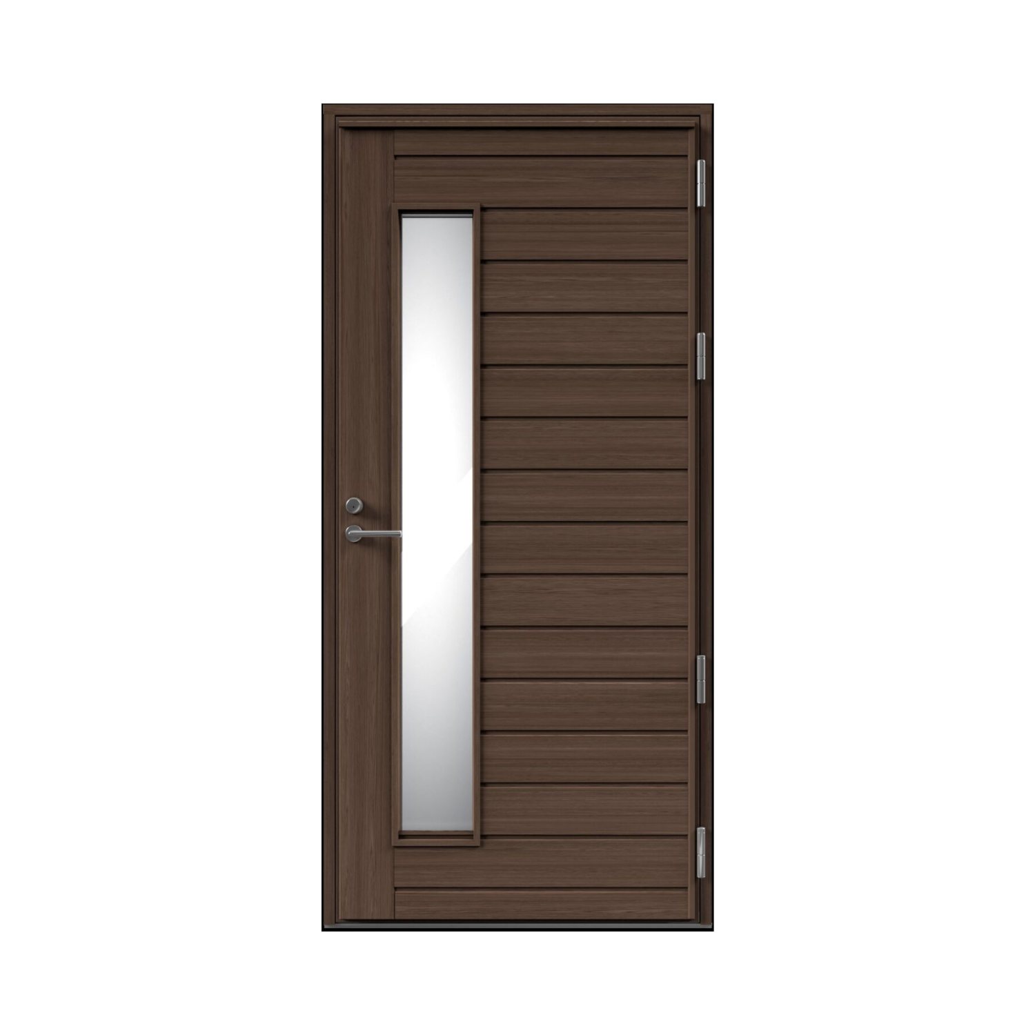 Kaski Woodpanel Tyyni durvis iespējams kombinēt ar dažādiem stikla sānelementiem un augšgaismas logiem, lai ieejas zonā nodrošinātu vairāk dabīgās gaismas un izceltu fasādes arhitektūru.